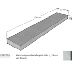 Voorzien van een waterhol 10 mm van de rand waarbij u rekening kunt houden met een overstek van 25 mm buiten uw metselwerk.