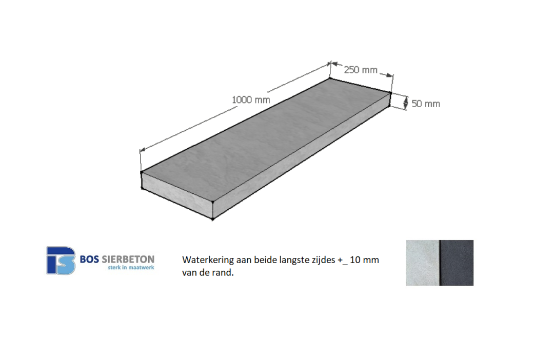Voorzien van een waterhol 10 mm van de rand waarbij u rekening kunt houden met een overstek van 25 mm buiten uw metselwerk.