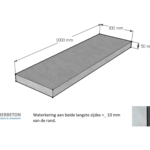 Voorzien van een waterhol 10 mm van de rand waarbij u rekening kunt houden met een overstek van 25 mm buiten uw metselwerk.