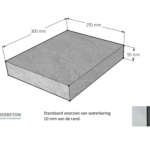Voorzien van een waterhol 10 mm van de rand waarbij u rekening kunt houden met een overstek van 25 mm buiten uw metselwerk.