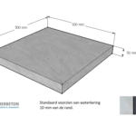 Voorzien van een waterhol 10 mm van de rand waarbij u rekening kunt houden met een overstek van 25 mm buiten uw metselwerk.