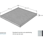 Voorzien van een waterhol 10 mm van de rand waarbij u rekening kunt houden met een overstek van 25 mm buiten uw metselwerk.